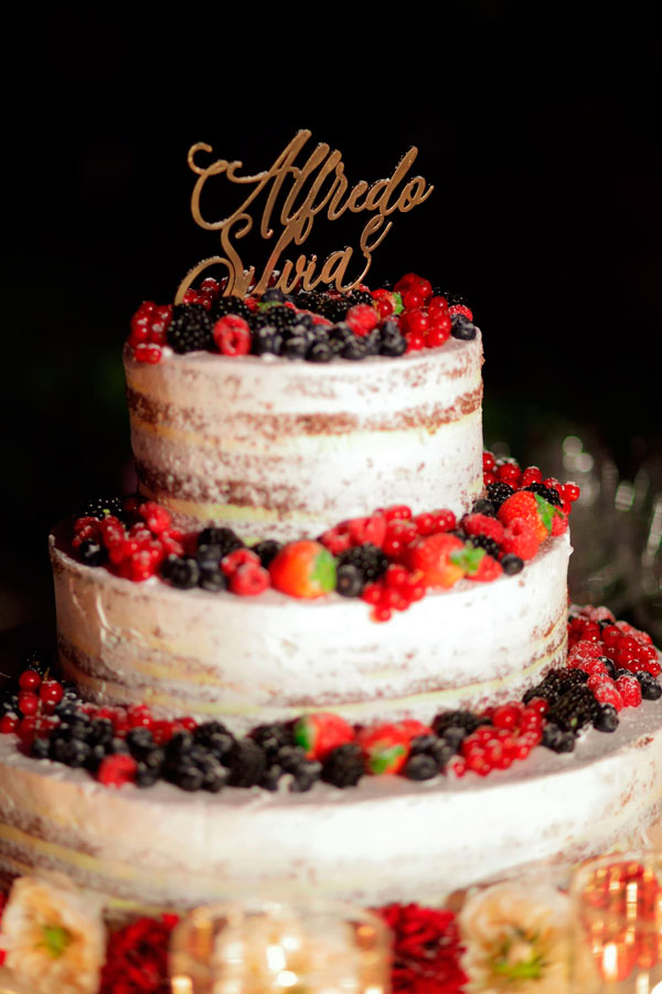 Questa torta poi viene lasciata “nuda”, ossia senza la copertura di panna o glassa di pasta di zucchero come accade, invece, nelle tradizionali wedding cake a piani.