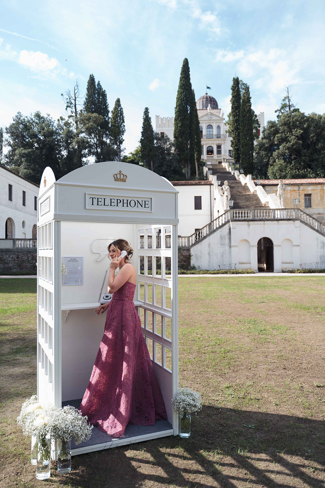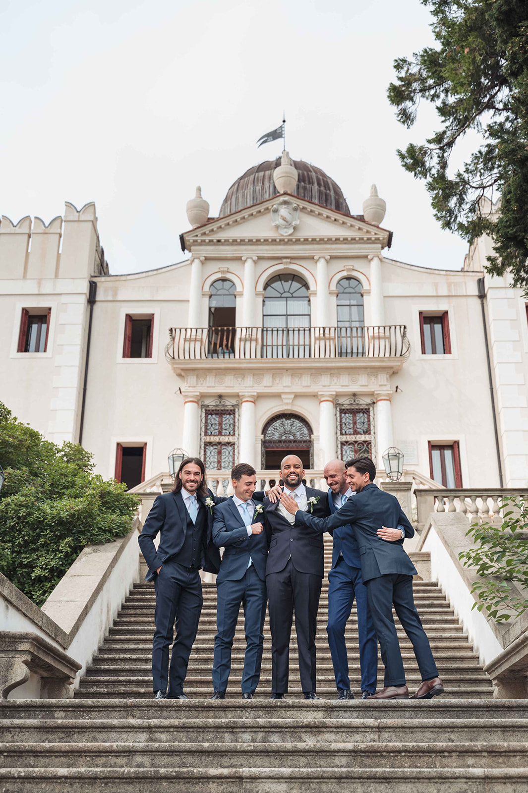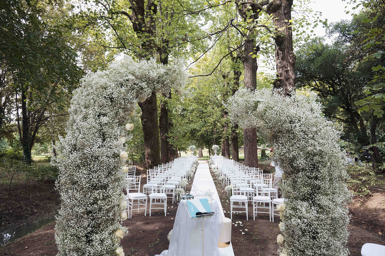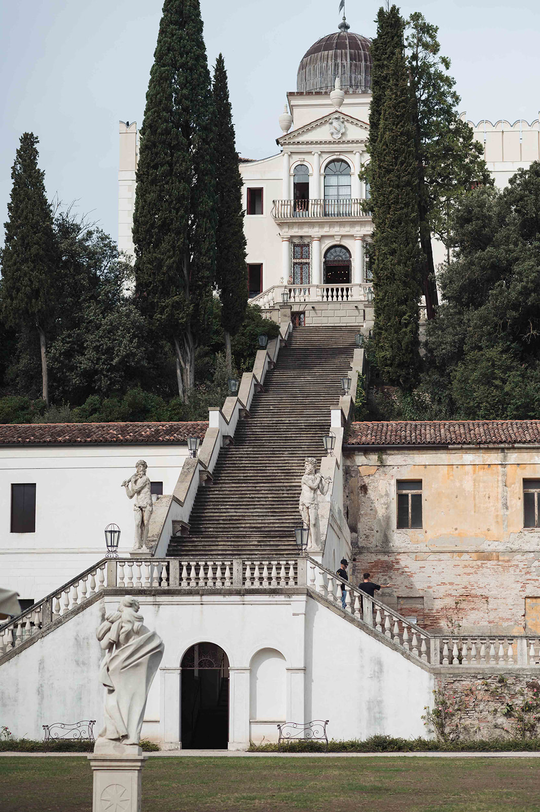 The wedding ceremony took place surrounded by nature, in the shade of a centuries-old tree-lined avenue. The reception and the late-night dance party were organized in the historic setting of this location immersed in the beauty of the Euganean Hills.