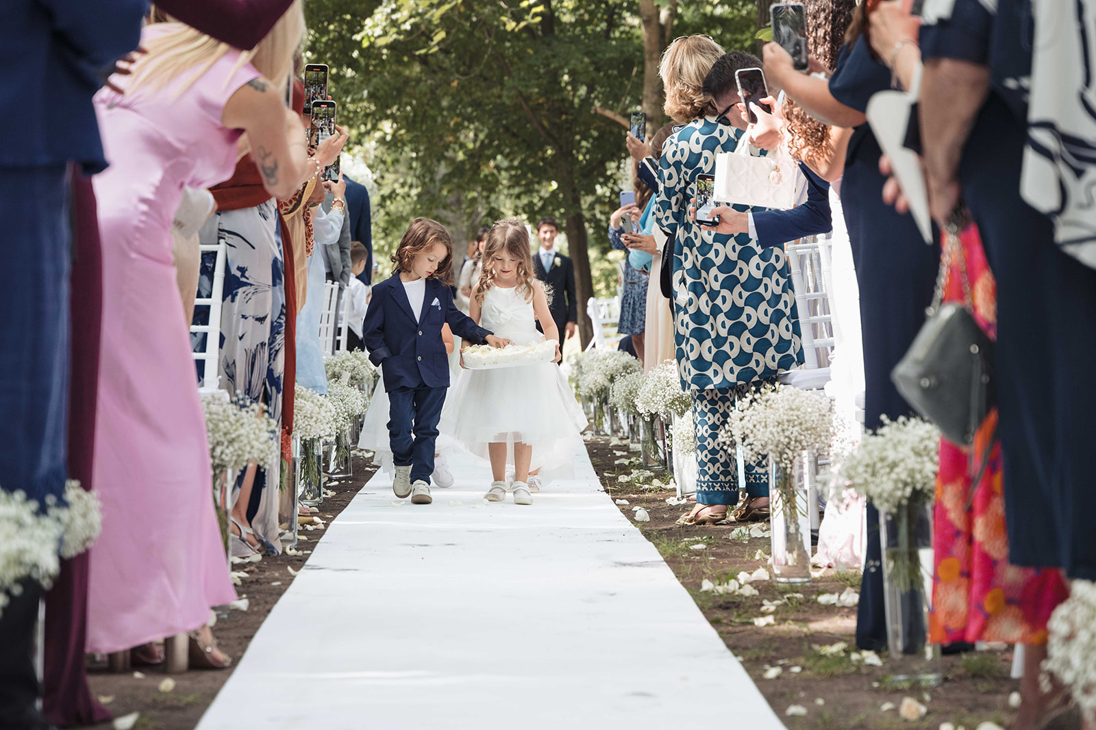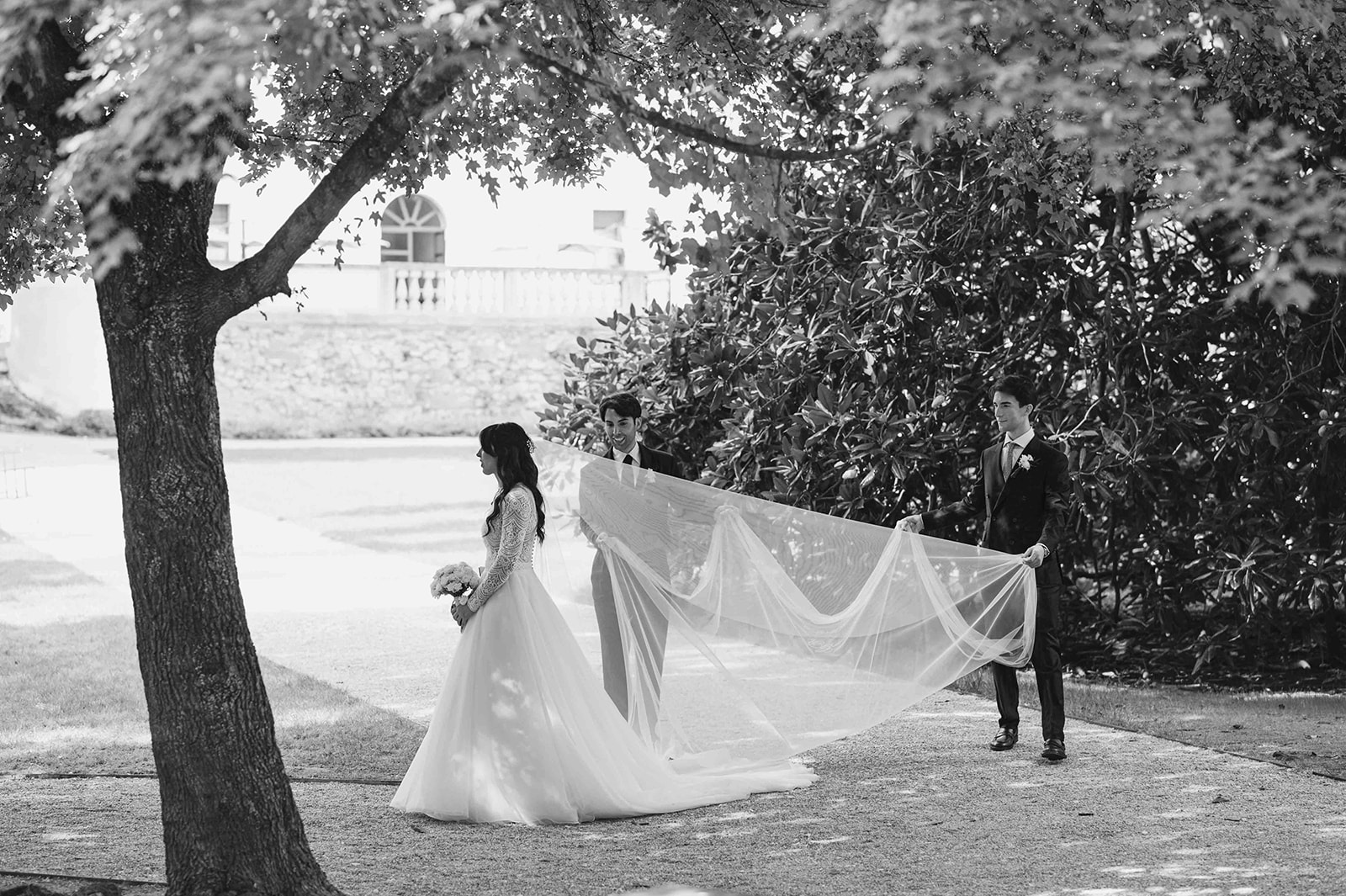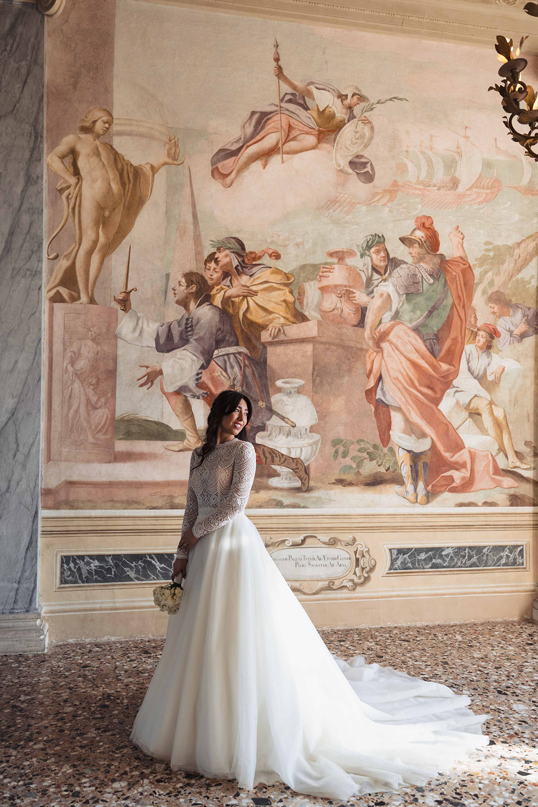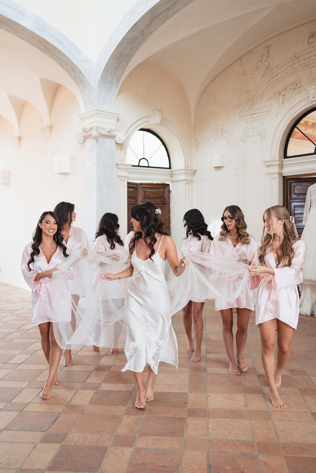 The wedding ceremony took place surrounded by nature, in the shade of a centuries-old tree-lined avenue. The reception and the late-night dance party were organized in the historic setting of this location immersed in the beauty of the Euganean Hills.