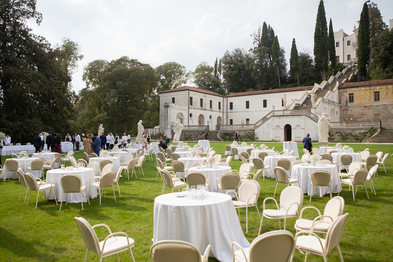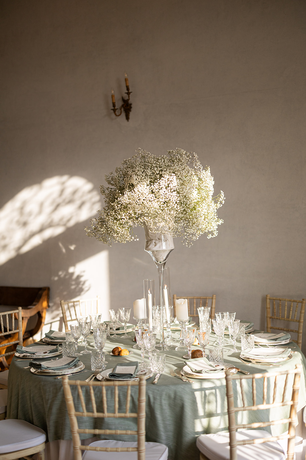 An enchanting place where nature blends with history and where we celebrated the love of Giulio and Giorgia, who amazed their guests with a rich and elegant floral arrangement entirely of gypsophila. The fireworks made the moment of cutting the cake even more spectacular and further enhanced the choice to get married at the foot of the Euganean Hills. Villa Selvatico is a suggestive location for the imposing staircase of 144 steps and for the various spaces including the frescoed rooms where the guests had the reception, sheltered from the late October temperatures. The centuries-old park was also the setting for the initial aperitif and the after party. In addition to the elegance of the design and the mise en place, what remains indelible is the smile of this lovely couple.