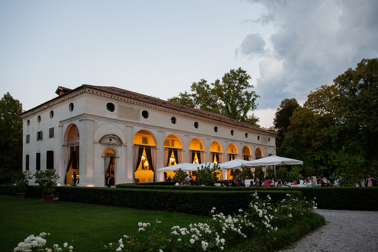 Claudia and Peter's wedding was sophisticated and full of magic, thanks to the immersive setting of crystal chandeliers framing the portico of Villa Foscarini Rossi.