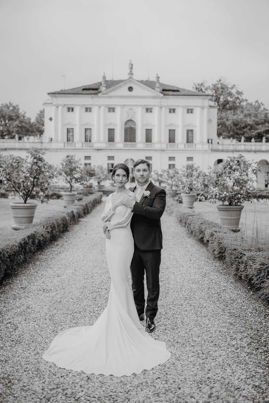 Destination Wedding Maison Mariage Italian Persian Elegant bride groom Villa ca marcello black and white