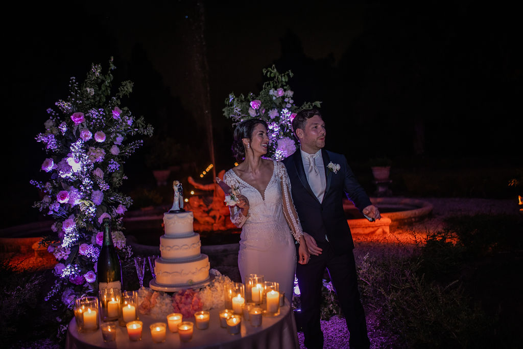 Destination Wedding Maison Mariage Italian Persian Elegant bride groom cake flowers setup