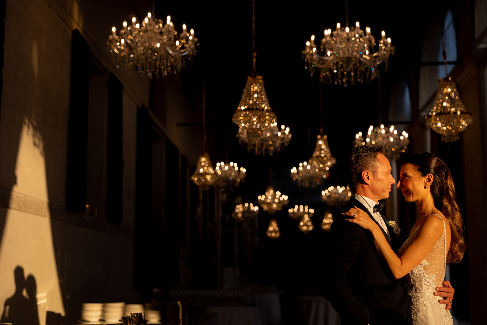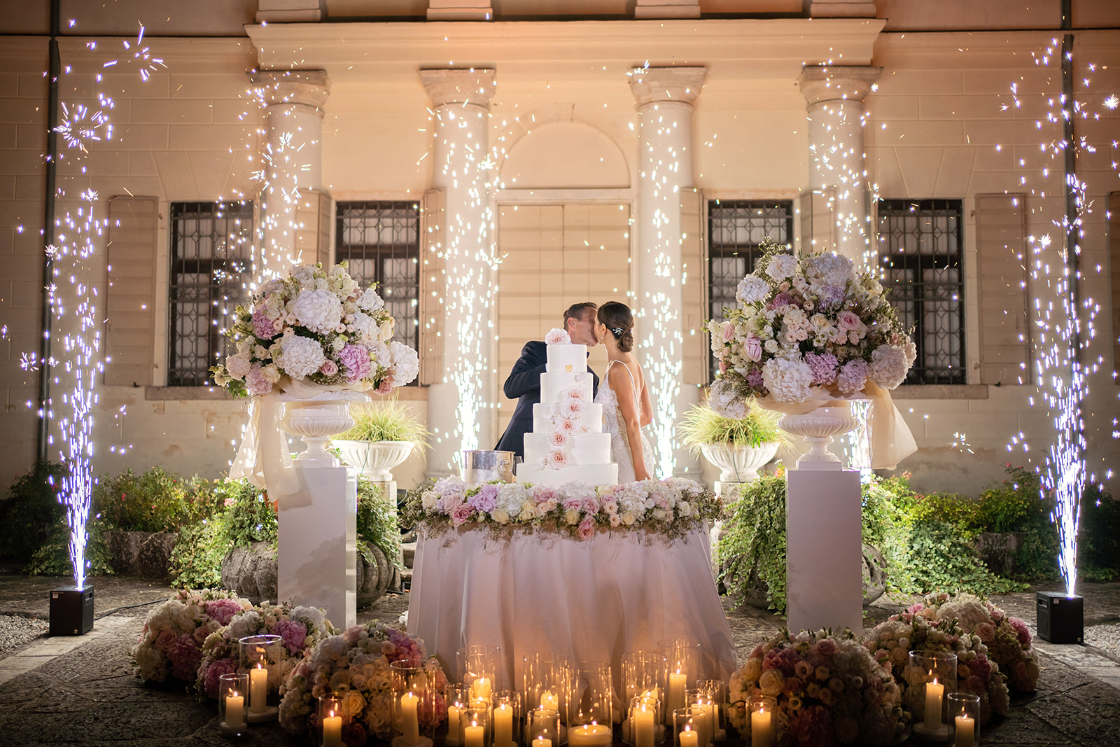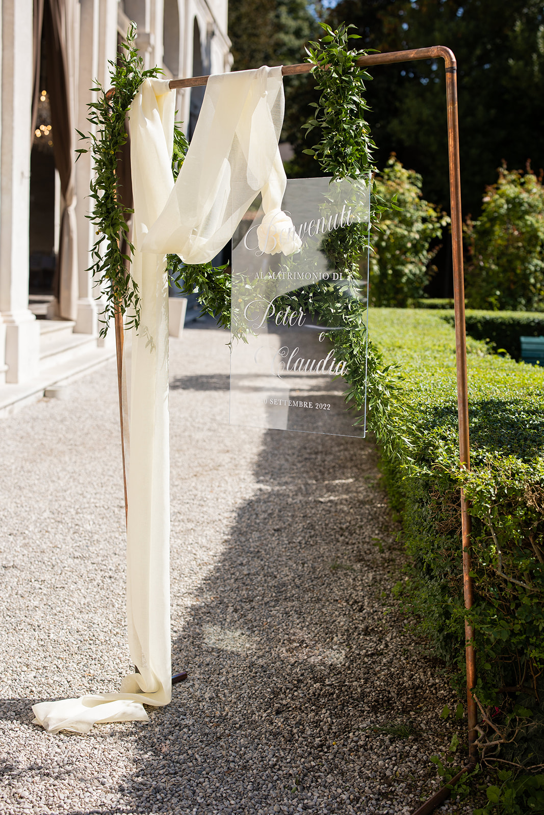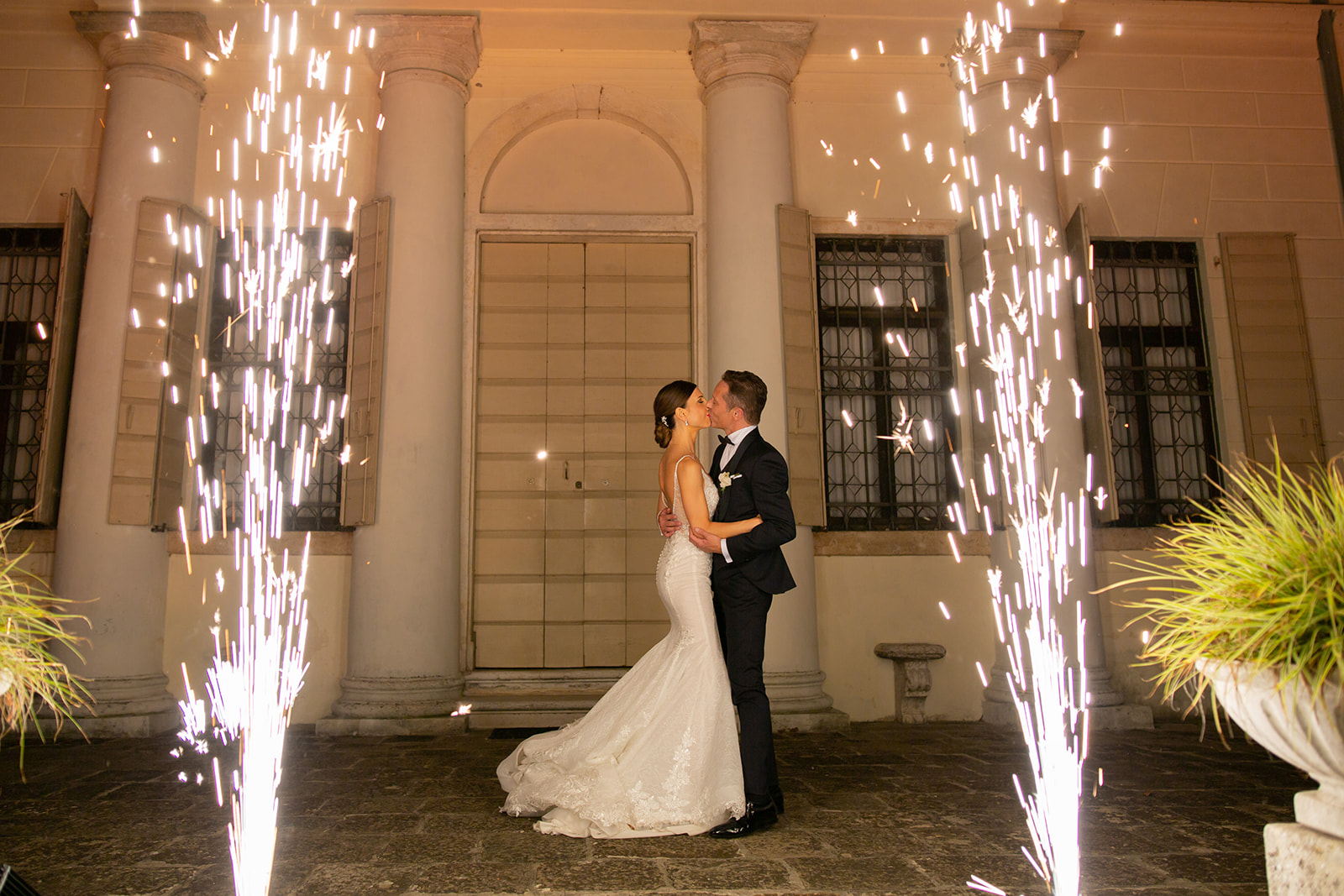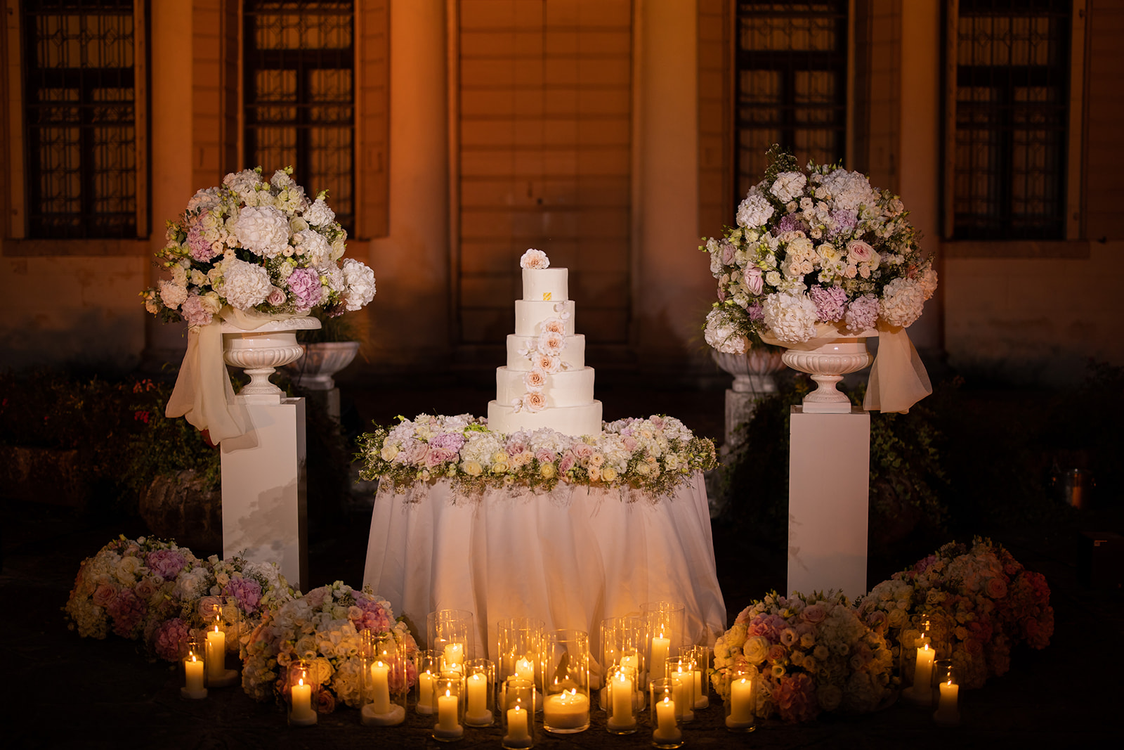 L'aggiunta di elementi ricercati, come cristalli scintillanti e tante candele, ha contribuito a creare un'ambientazione esclusiva e accogliente. Ogni arredo è stato scelto con cura per riflettere lo stile raffinato degli sposi, rendendo questo matrimonio in Villa Foscarini Rossi un vero capolavoro di eleganza.