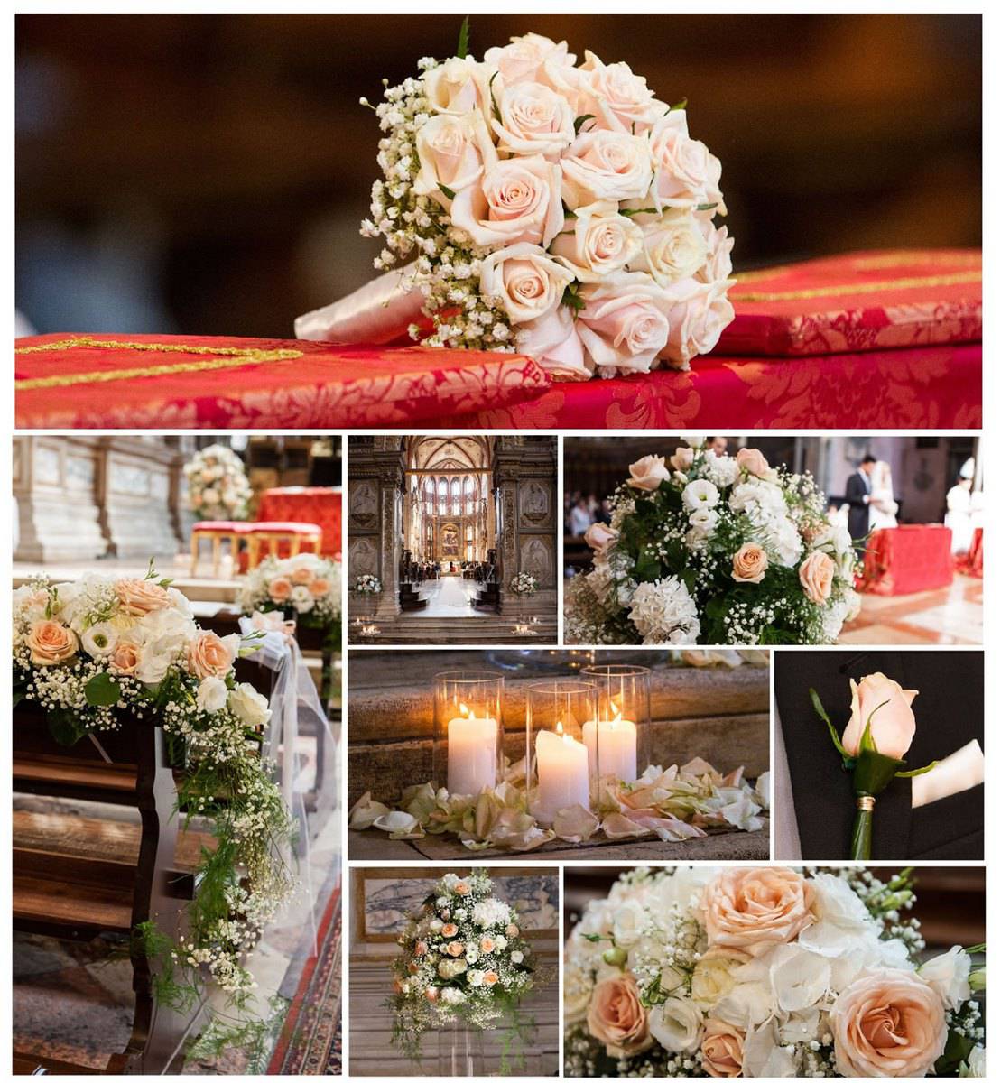 dettagli addobbi floreali chiesa matrimonio a Venezia